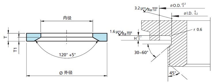 | 尺寸 | 螺紋(公制)) | 螺紋(英制) | ø內(nèi)徑 | T | øOD | øID | H |
